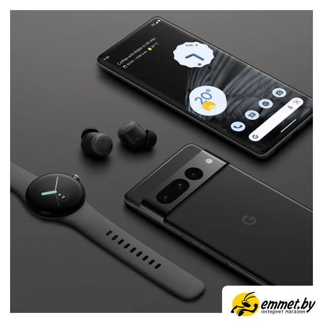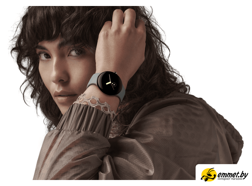 Умные часы Google Pixel Watch (глянцевый серебристый/угольный, спортивный силиконовый ремешок)