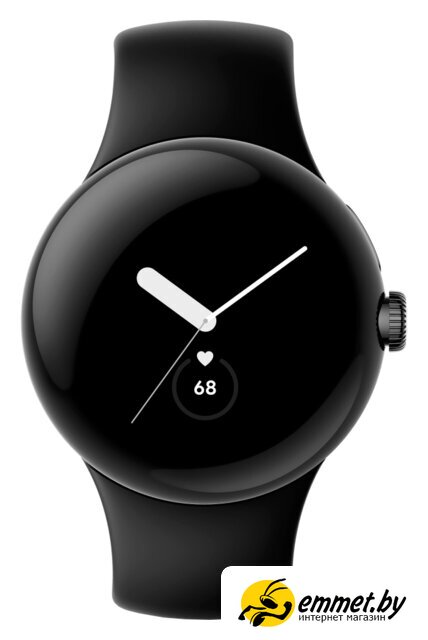 Умные часы Google Pixel Watch (матовый черный/обсидиан, спортивный силиконовый ремешок)