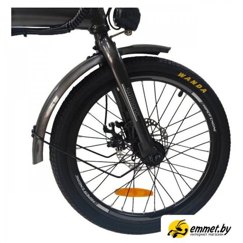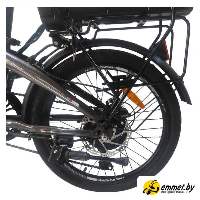 городской, мощность: 250 Вт, максимальная скорость на моторе: 25 км/ч, материал рамы: сталь, складная рама, колеса 20", вилка жесткая, трансмиссия 7 скор., тормоза дисковый механический + дисковый механический, вес 24.3 кг