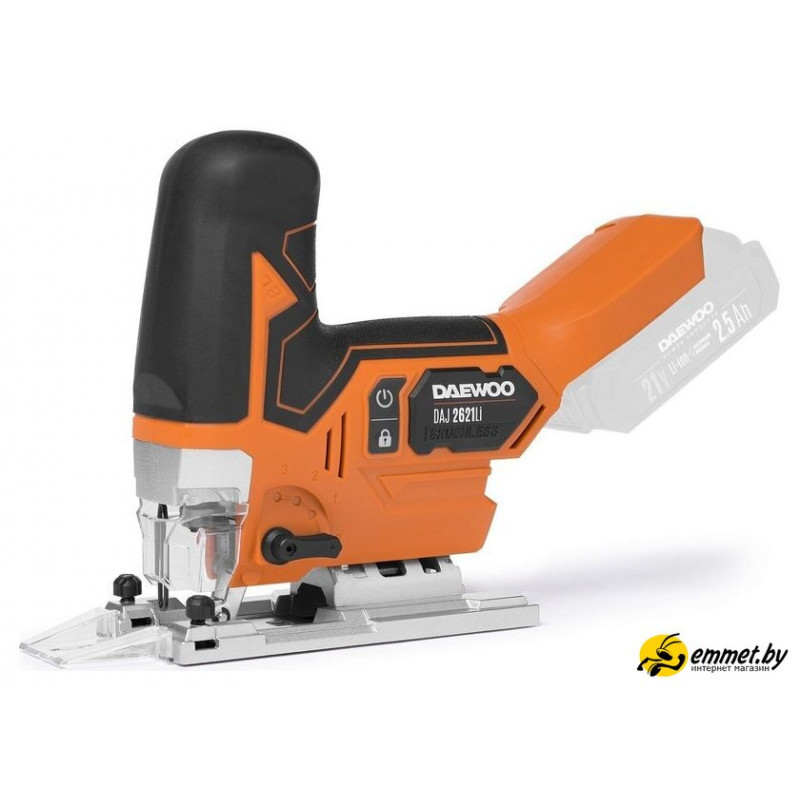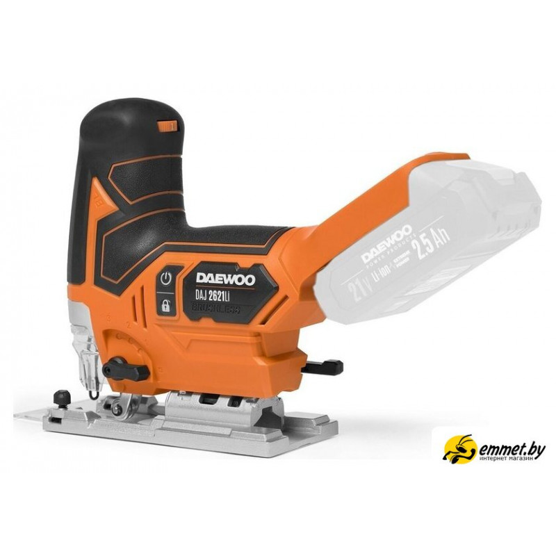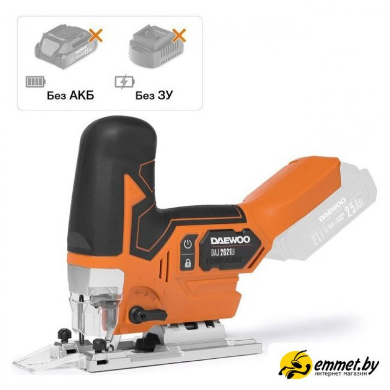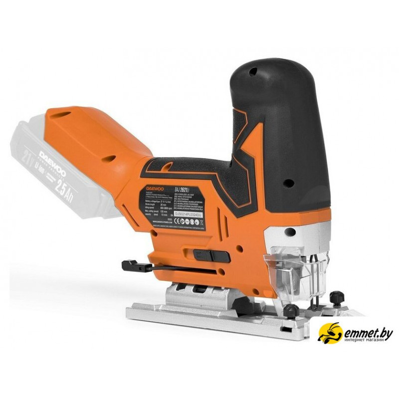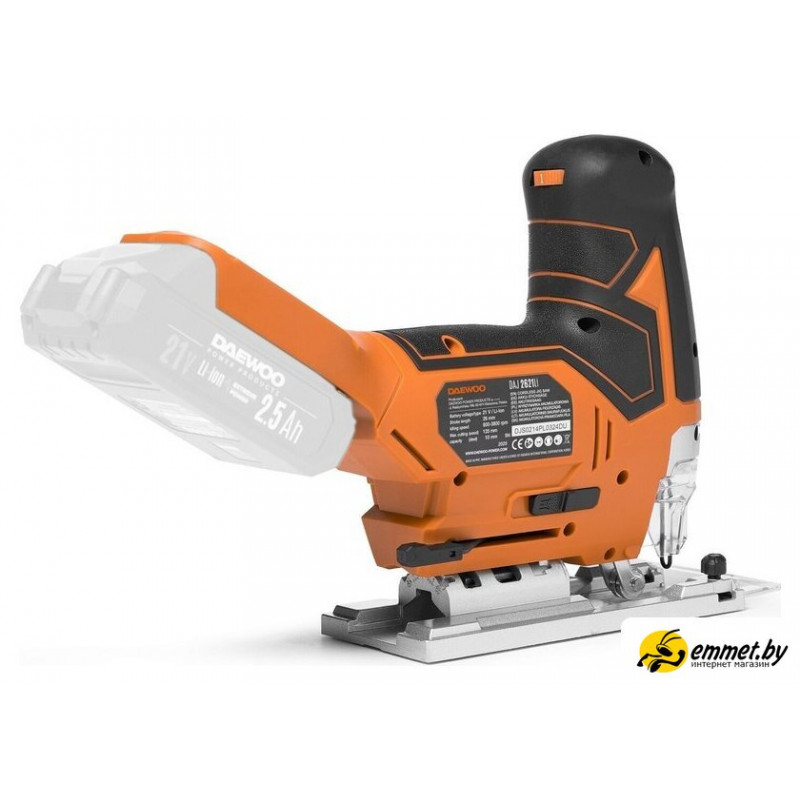грибообразная рукоятка, питание: аккумуляторный (21 В), без аккумулятора в комплекте, глубина пропила: 135 мм (дерево), 10 мм (сталь), 800–3800 ходов/мин, ход пилки: 26 мм, 2.4 кг