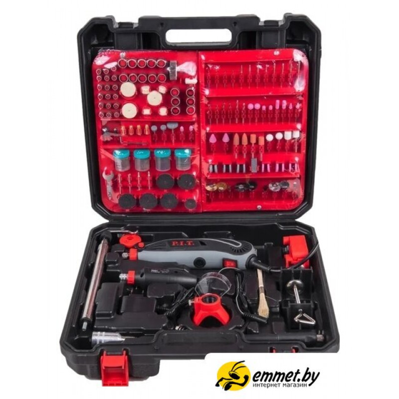 | Комплектация | - Гравер 150 Вт- Бормашина 12 вольт- Адаптер 12 вольт- Комплект из 350 принадлежностей- Кисть для удаления стружки- Цанги- Подсветка на диодах- Телескопический штатив- Гибкий вал- Пластиковый кейс |