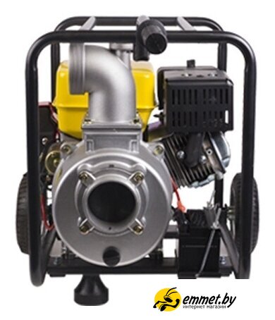 для грязной воды, бензиновый двигатель, мощность 9.5 кВт, производительность 1800 л/мин, высота подъема 26 м, бак 6.5 л, патрубки 100/100 мм