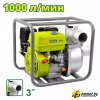 для чистой воды, бензиновый двигатель, мощность 5.1 кВт, производительность 1000 л/мин, высота подъема 32 м, бак 3.6 л, патрубки 80/80 мм
