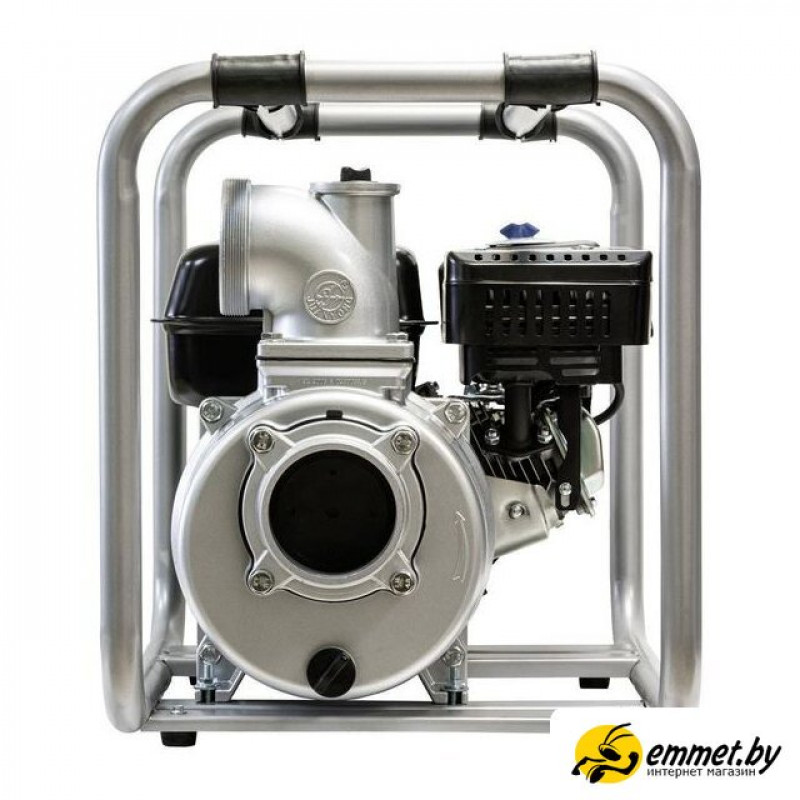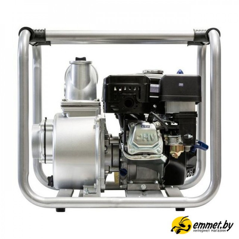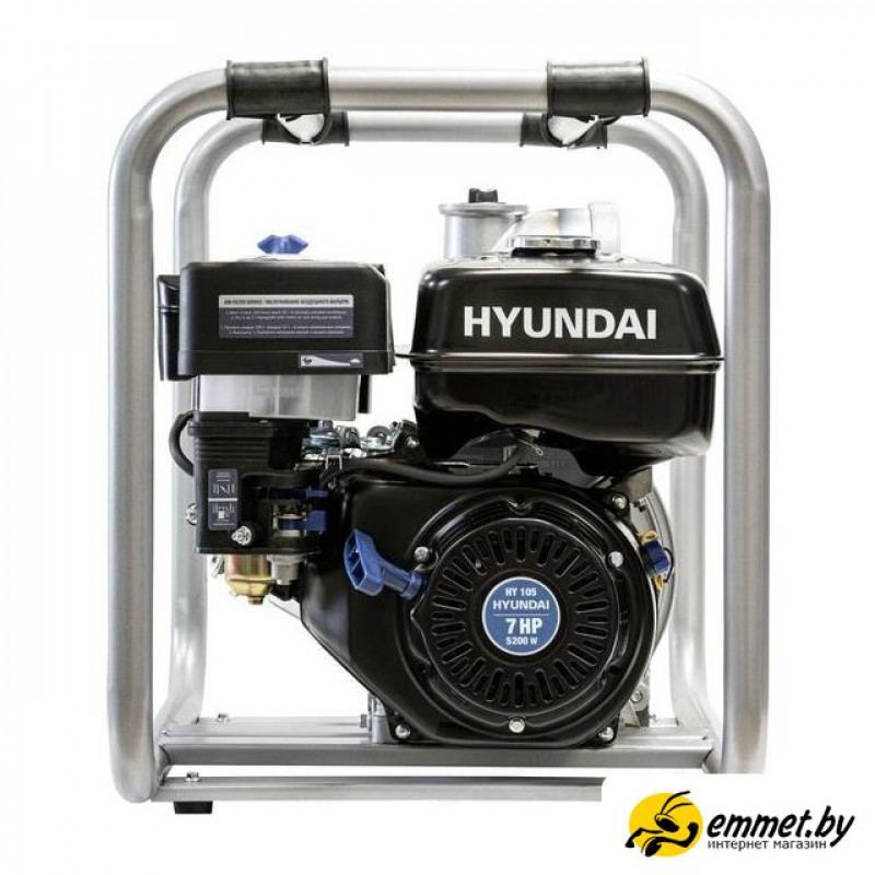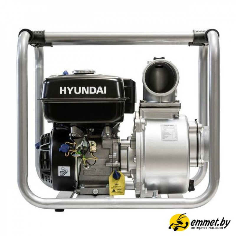 для слабозагрязненной воды, бензиновый двигатель Hyundai IC210, мощность 5.2 кВт, производительность 1300 л/мин, высота подъема 18 м, бак 6.5 л, патрубки 100/100 мм