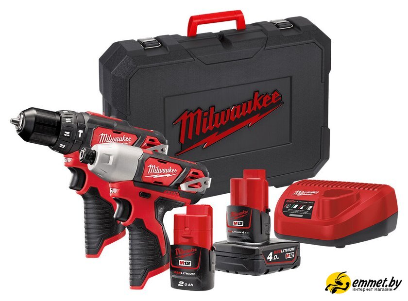 Наборы электроинструментов Milwaukee M12 M12BPP2B-421C 4933443497 (шуруповерт, винтоверт, 2 АКБ, кейс)