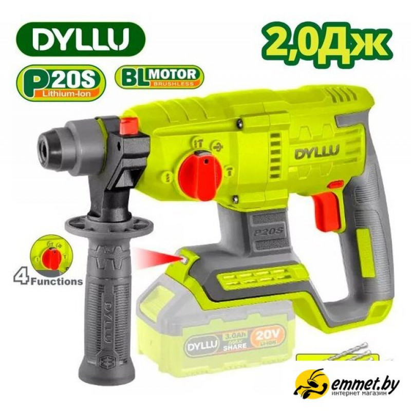 питание: аккумуляторный (20 В), 5400 ударов/мин, энергия удара: 2 Дж, без аккумулятора в комплекте, 2750 г