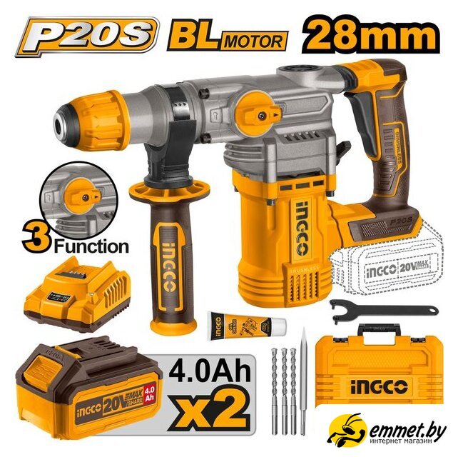 Перфоратор Ingco CRHLI202882 (с 2-мя АКБ, кейс)