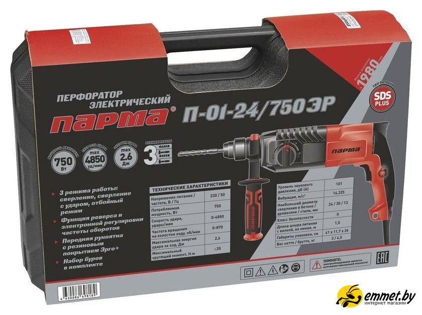 Перфоратор Парма П-01-24/750ЭР (кейс)