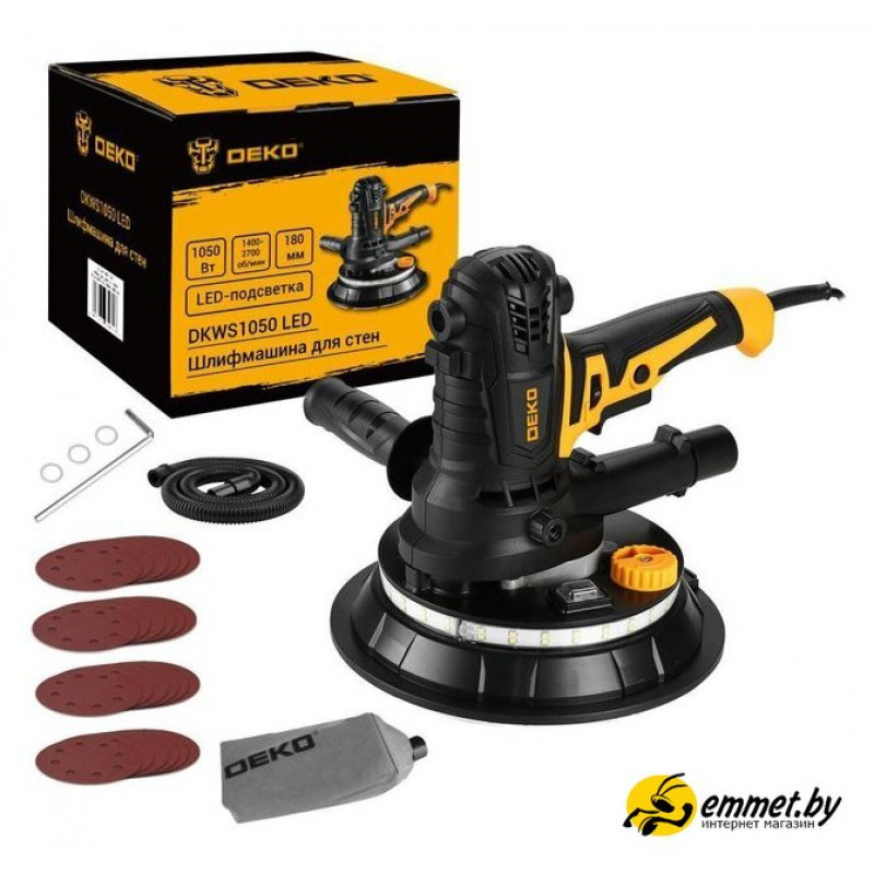 | Комплект поставки | - Шлифмашина - 1 шт.- Шланг для пылесоса - 1 шт.- Мешок-пылесборник - 1 шт.- Шлифовальные диски - 24 шт.- Шестигранный ключ - 1 шт.- Дополнительная рукоятка - 1 шт.- Проставочные кольца - 3 шт.- Угольные щётки - 2 шт.- Руководство по эксплуатации- Коробка |