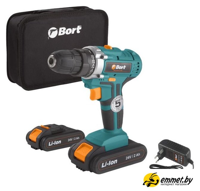 Дрель-шуруповерт Bort BAB-24UX2LI-FDK (с 2-мя АКБ)