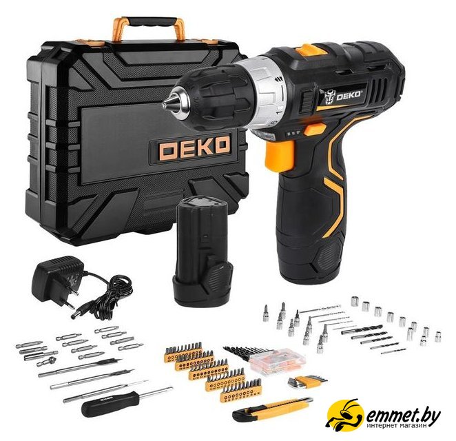 Дрель-шуруповерт Deko GCD12DU3 SET 195 063-4134 (с 2-мя АКБ, кейс, набор оснастки)