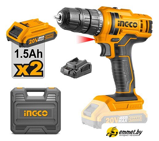 Дрель-шуруповерт Ingco Super Select CDLI20028 (с 2-мя АКБ, кейс)