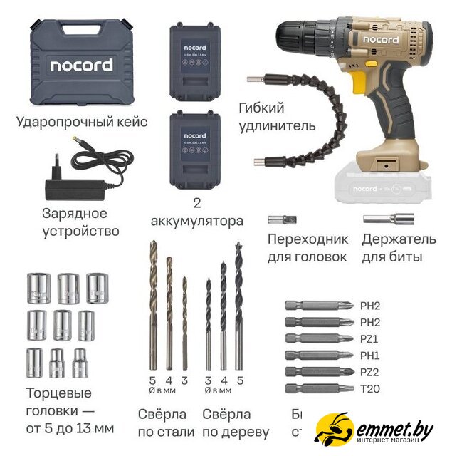 Дрель-шуруповерт Nocord NCD-20.2.15.C (с 2-мя АКБ, кейс)