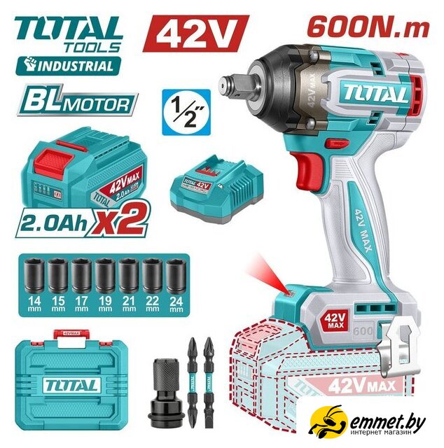 Гайковерт Total TIWLI42602 (с 2-мя АКБ, кейс)