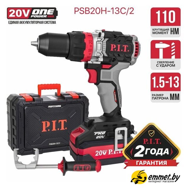 Ударная дрель-шуруповерт P.I.T. PSB20H-13C/2 (с 2-мя АКБ, кейс)