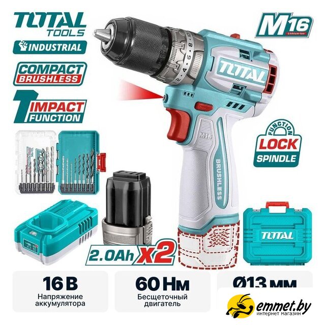 Ударная дрель-шуруповерт Total TOSLI241199 (с 2-мя АКБ, кейс)