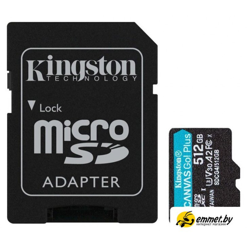 512 ГБ, класс 10, UHS-I (класс U3), V30, A2, чтение: 200 МБ/с, запись: 160 МБ/с, адаптер