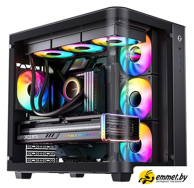 аквариум/Mid Tower, БП отсутствует, для плат ATX/micro-ATX/mini-ITX, окно: закаленное стекло, видеокарта до 420 мм, охлаждение ЦП до 165 мм, пылевые фильтры, 2xUSB-A 3.2 5Гбит/с, 1xUSB-C 3.2 10Гбит/с, цвет черный