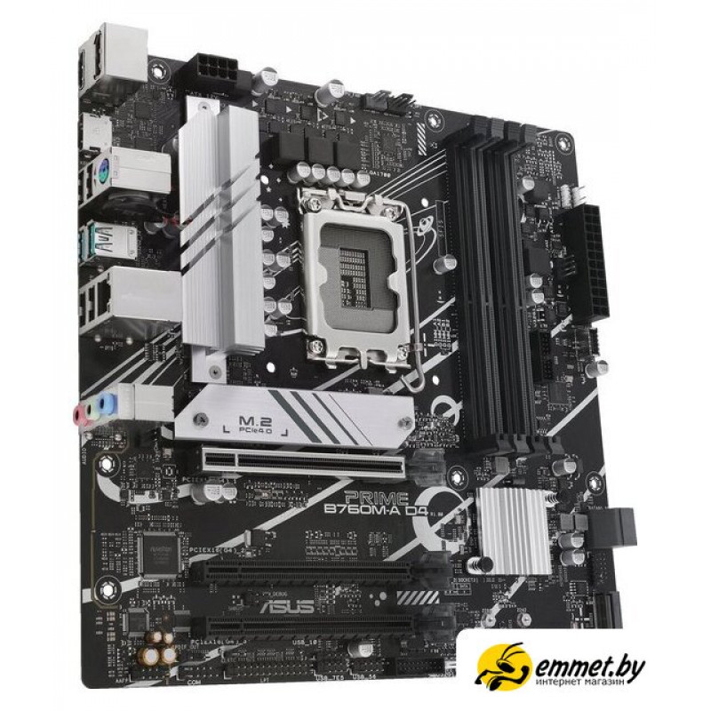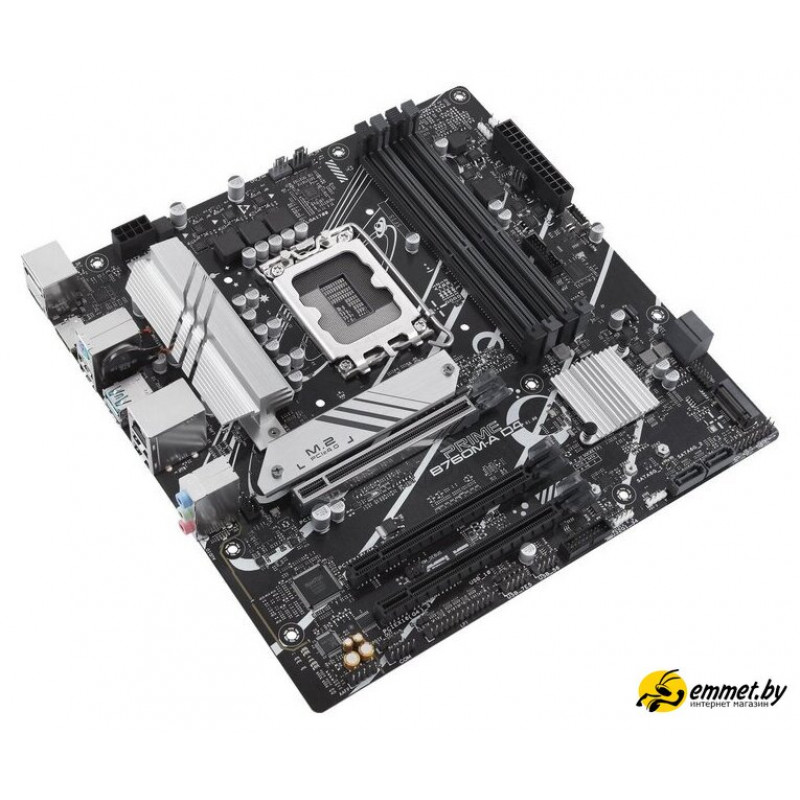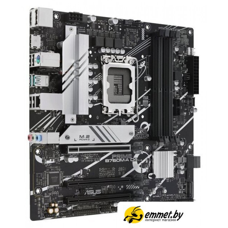 mATX, сокет Intel LGA1700, чипсет Intel B760, память 4xDDR4 до 5333 МГц, слоты: 3xPCIe x16 4.0, 2xM.2