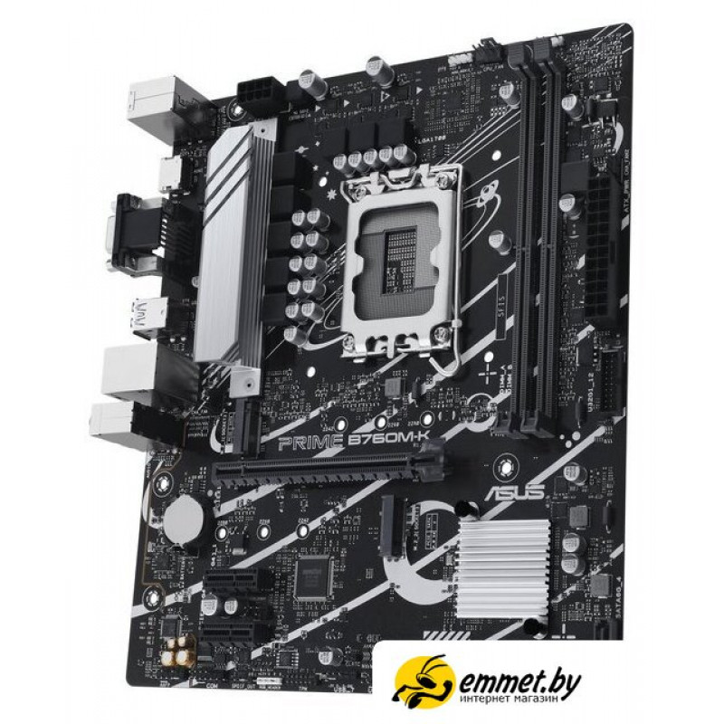 mATX, сокет Intel LGA1700, чипсет Intel B760, память 2xDDR5 до 8000 МГц, слоты: 1xPCIe x16 4.0, 2xPCIe x1, 2xM.2