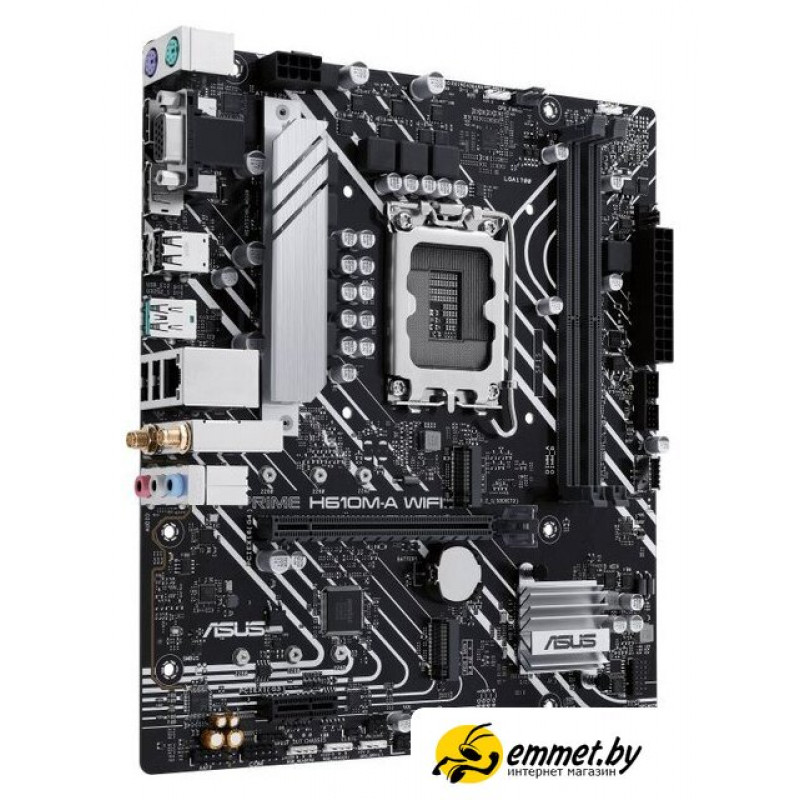mATX, сокет Intel LGA1700, чипсет Intel H610, память 2xDDR5 до 5600 МГц, слоты: 1xPCIe x16 4.0, 1xPCIe x1, 2xM.2, 802.11ac (Wi-Fi 5)+Bluetooth 5.0