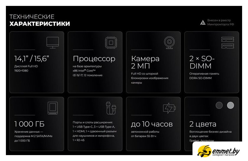14.1" 1920 x 1080, IPS, 60 Гц, Intel Core i5 1235U, 8 ГБ DDR4, SSD 256 ГБ, видеокарта встроенная, без ОС, цвет крышки темно-серый, аккумулятор 55 Вт·ч. Профессиональная консультация! Доброжелательные и тактичные курьеры, ответят на все интересующие вопросы! Доставка бесплатная, исключениями являются доставка крупногабаритного груза и доставка по регионам! Возможен самовывоз!