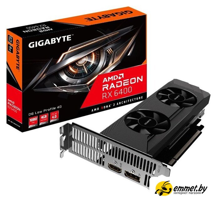 Видеокарта Gigabyte Radeon RX 6400 D6 Low Profile GV-R64D6-4GL