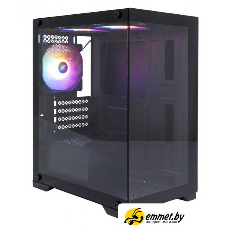 Mini Tower, БП отсутствует, для плат micro-ATX/mini-ITX, в комплекте 3 вентилятора, окно: закаленное стекло, видеокарта до 310 мм, охлаждение ЦП до 165 мм, 1xUSB 2.0, 1xUSB-A 3.2 5Гбит/с, цвет черный