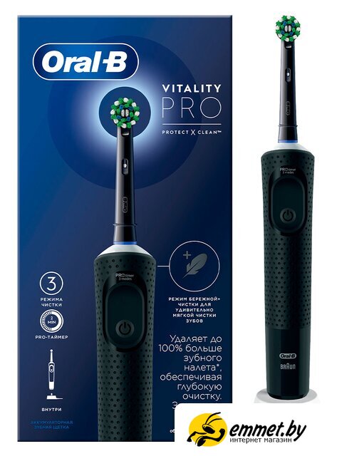 Электрическая зубная щетка Oral-B Vitality Pro D103.413.3 Cross Action Protect X Clean Black 4210201427100 (черный)