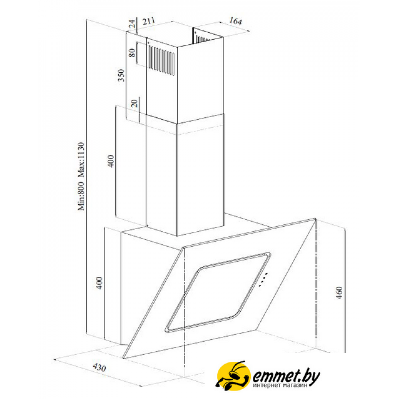 конструкция наклонная, монтаж настенный, ширина 59.6 см, управление сенсорное, производительность вытяжки 566 м³/ч, цвет черный