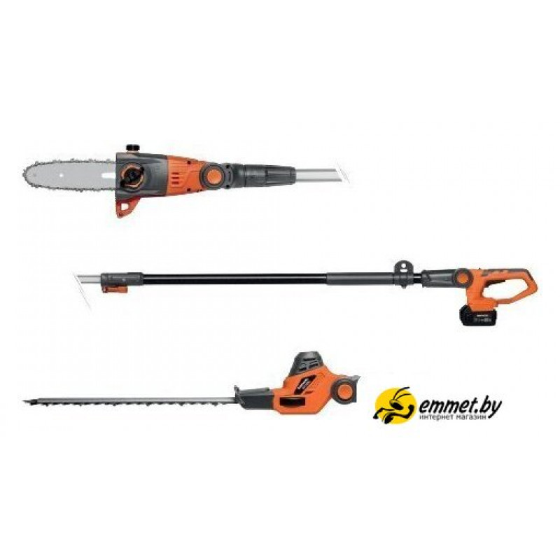 | Варианты комплектации | 1 АКБ 5 Ач, насадка высоторез, насадка кусторез, телескопическая штанга |