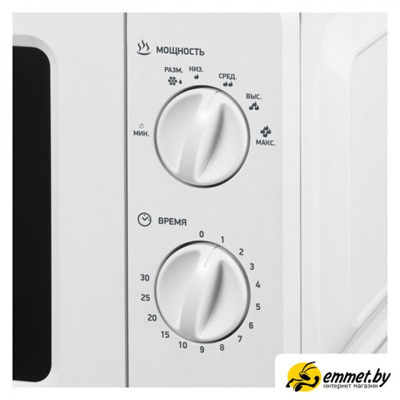 отдельностоящая, микроволны (соло), объем 17 л, выходная мощность микроволн 700 Вт, управление механическое, цвет белый
