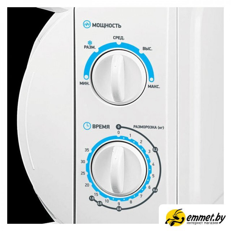 отдельностоящая, микроволны (соло), объем 20 л, выходная мощность микроволн 700 Вт, управление механическое, цвет белый