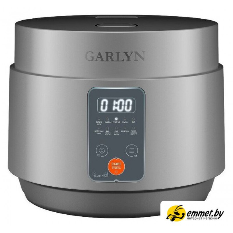 | Перечень режимов работы | 1. GARLYN ШЕФ2. ЖАРКА3. ТУШЕНИЕ4. ПАСТА5. СУП6. МОЛОЧНАЯ КАША7. РИС/КРУПЫ8. ПАР/ВАРКА9. ВЫПЕЧКА10. ТЕСТО/ЙОГУРТ11. ЭКСПРЕСС |
