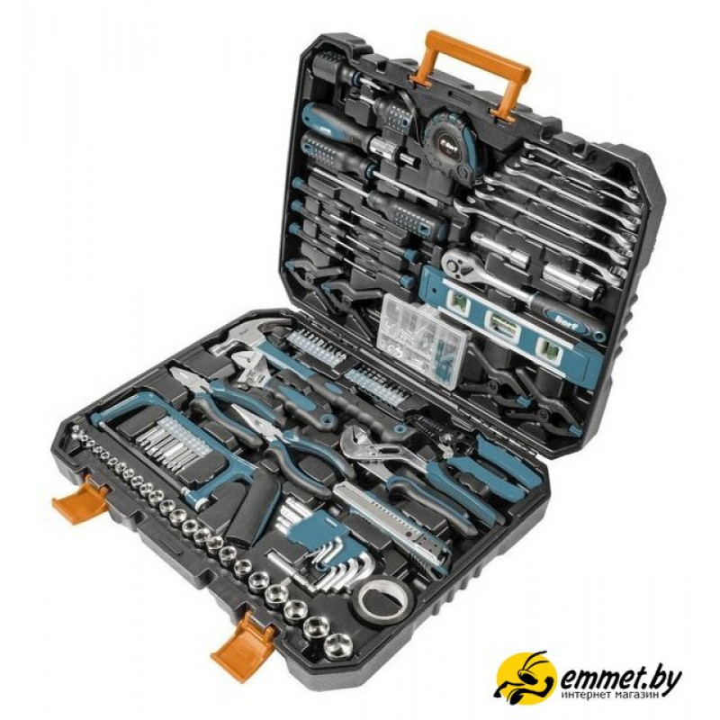 | Комплектация | Рулетка измерительная 3м (1 шт) Отвертка для бит (1 шт) Отвертки (4 шт) Часовая отвертка (5 шт) Зажим ручной (4 шт) Ключ комбинированный (6 шт) Уровень пузырьковый (1 шт) Рукоятка с трещеткой квадрат 3/8 (1 шт) Удлинитель 3/8 * 3 (1 шт) Головка торцевая свечная, 3/8 (1 шт) Головки 1/4 (12 шт) Головки 3/8 (10 шт) Переходник 1/43/8 (1 шт) Биты 25 мм (20 шт) Биты 50 мм (10 шт) Ключ разводной (1 шт) Клещи переставные (1 шт) Пассатижи (1 шт) Длинногубцы 160мм (1 шт) Молоток (1 шт) Приспособление для зачистки проводов (1 шт) Ножовка по металлу (1 шт) Изолента (1 шт) Набор принадлежностей (70 шт) Ключ шестигранный (9 шт) Нож (1 шт) Адаптер шестигранный (1 шт) Кейс (1 шт) |