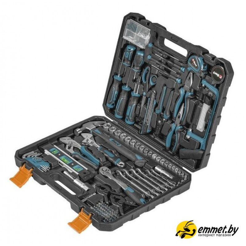 Комплектация Отвертка (8 шт) Биты (50 шт) Торцевые головки (22 шт) Ключ комбинированный (6 шт) Ключ имбусовый (9 шт) Изолента (1 шт) Ножницы (1 шт) Нож (1 шт) Адаптер (1 шт) Держатель для бит (1 шт) Длинногубцы 160мм (1 шт) Плоскогубцы 160мм (1 шт) Ключ трубный (1 шт) Ключ разводной (1 шт) Молоток (1 шт) Нож (1 шт) Лезвие для ножа (10 шт) Ножовка (1 шт) Пилка (2 шт) Хомут (10 шт) Рулетка (1 шт) Зажим ручной (2 шт) Линейка измерительная (1 шт) Набор крепежа (70 шт) Рукоятка с трещеткой квадрат 3/8 (1 шт) Отвертка храповая (1 шт) Уровень пузырьковый (1 шт) Удлинитель 3/8 75 мм (1 шт) Удлинитель 1/4:50 мм (1 шт) Головка торцевая удлиненная 3/8 (1 шт) Приспособление для зачистки проводов (1 шт)