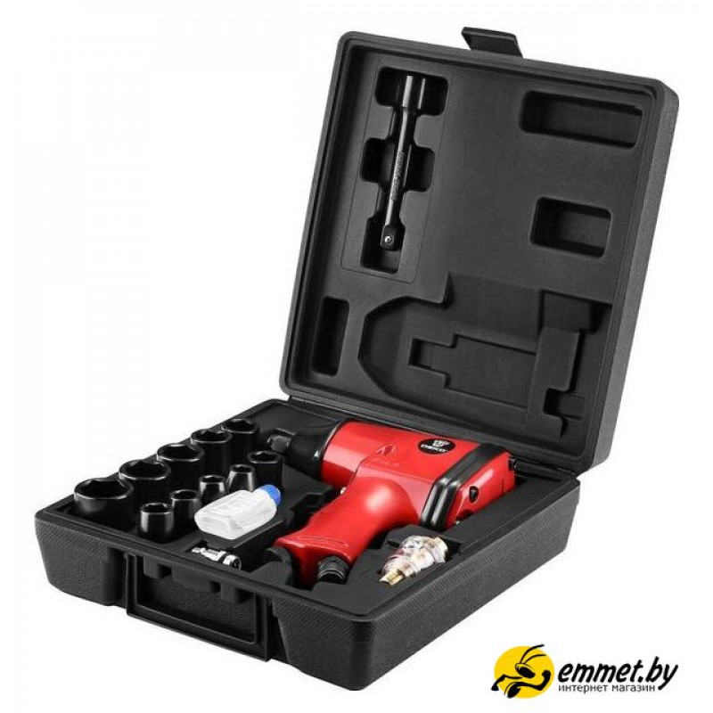 | Комплектация | Ударный гайковерт - 1/21/2 ключ - 1 шт.1/2 головки: 9,10,11,13,14,17,19,22,24,27 мм - 10 шт.1/2 к 5 удлинитель - 1 штМасленка - 1 шт4 мм шестигранный ключ - 1 шт.Боек - 1 шт.Масло для пневмоинструмента - 1 шт. |