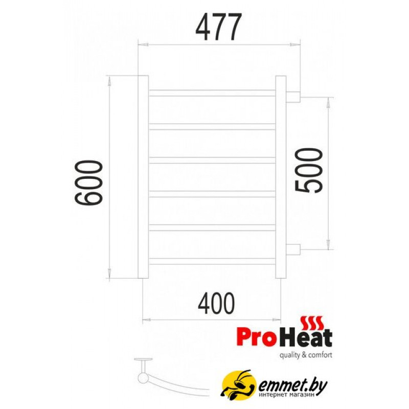водяной, "лесенка", нержавеющая сталь, подключение боковое (500 мм, 1"), 60x47.7 см, цвет: черный