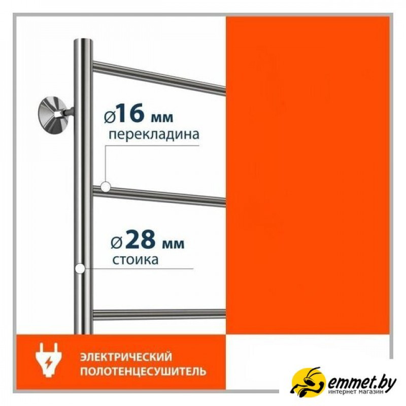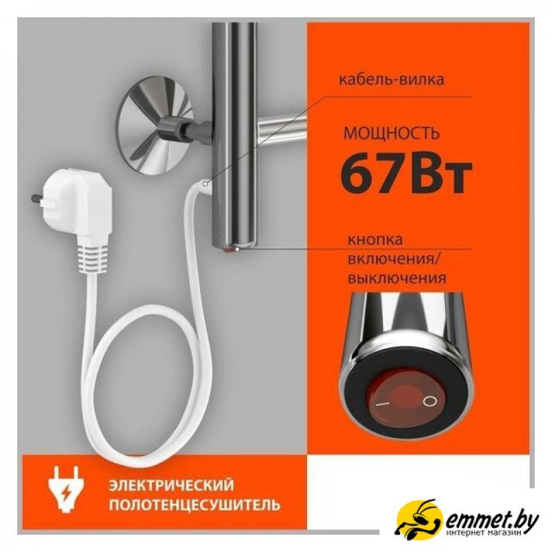 электрический, "лесенка", нержавеющая сталь, 60x43.2 см, цвет: хром
