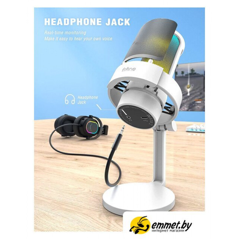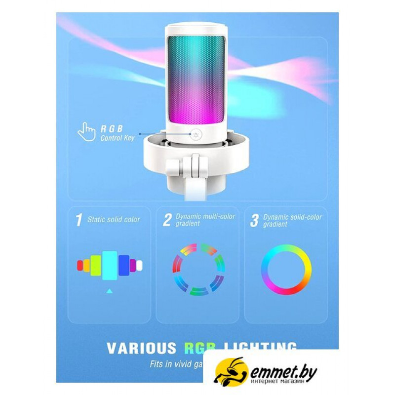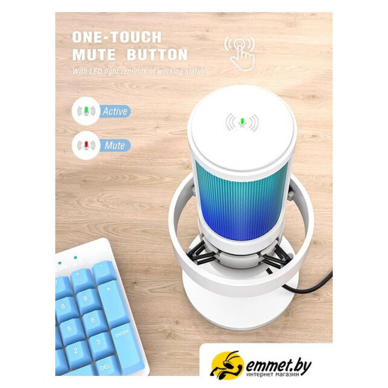 конденсаторный, кардиоидная направленность, настольный, для стриминга и подкастов, 50-20000 Гц, подключение по USB Type-A, белый