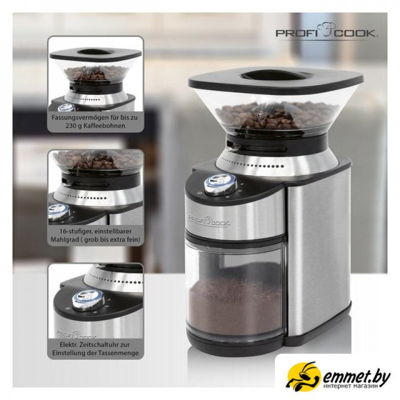 200 Вт, контейнер для зерен на 230 г, регулировка степени помола