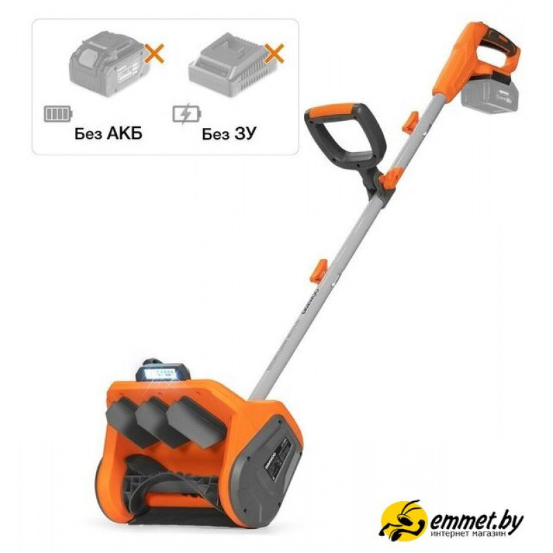 ручной, аккумуляторный двигатель, захват 34x20 см, выброс на 6 м