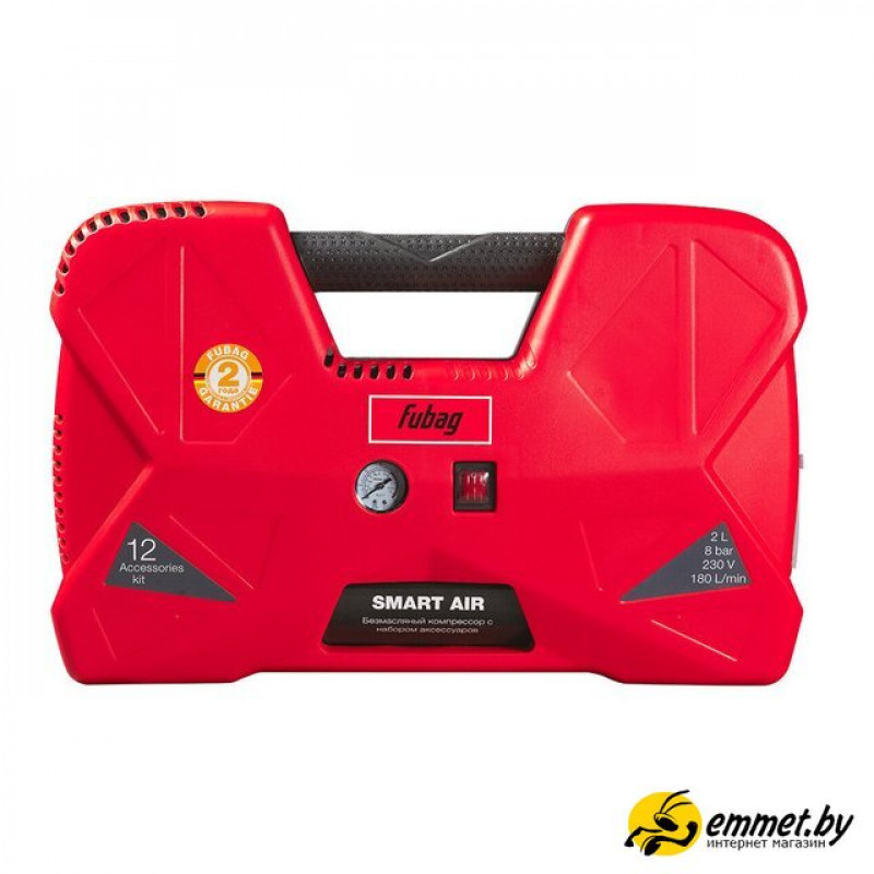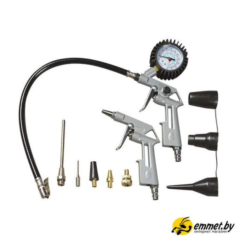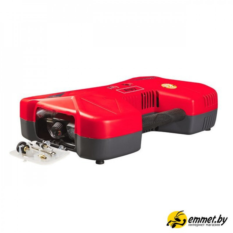 | Комплектация | Компрессор Воздушный шланг, 3 м Пневмопистолет с манометром для накачки Пневмопистолет для продувки Удлиненная насадка для продувки Игла для накачки мячей Универсальный адаптер для клапанов с внутренним диаметром 6 мм Универсальный адаптер для клапанов с внутренним диаметром 9 мм Адаптер для накачки велосипедных шин Насадки для накачки лодок, матрасов, бассейнов Переходник (для насадок накачки лодок, матрасов, бассейнов) |