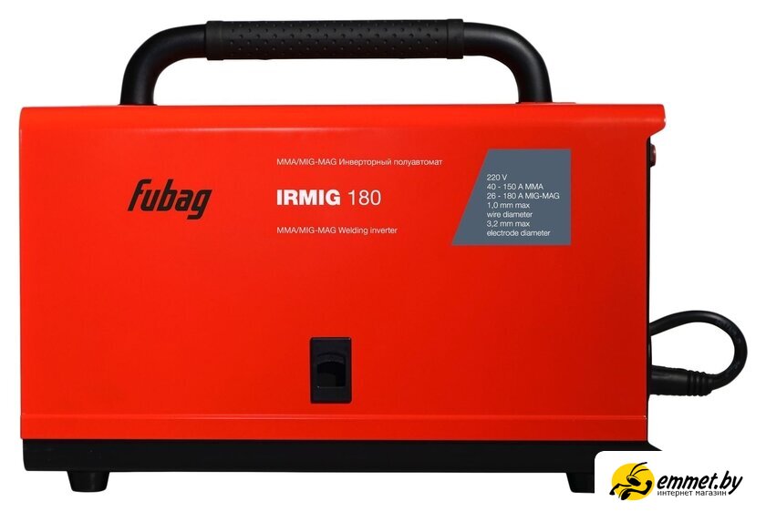 ручная дуговая сварка (MMA)/полуавтоматическая сварка (MIG MAG), 220 В, сварочный ток: 26–180 А, диаметр электрода: 3.2 мм, 9.6 кг