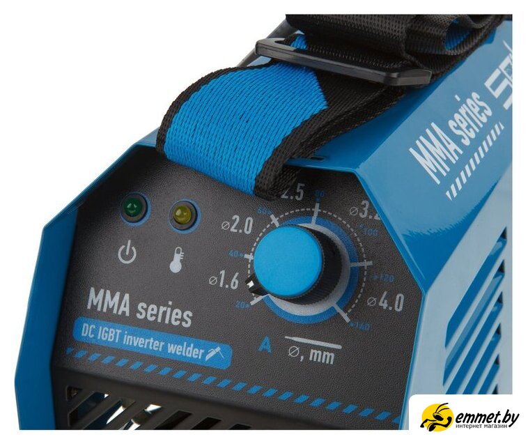 ручная дуговая сварка (MMA), входное напряжение 160–240 В, сварочный ток: 20-140 А, диаметр электрода: 1.6–4 мм, 3.1 кг