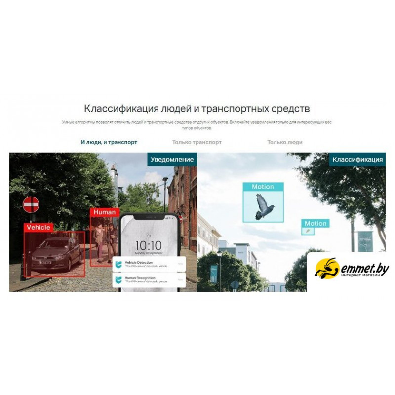 | Внутрикамерная видеоаналитика | обнаружение движения, пересечение линии, детекция лиц, детекция оставленных предметов, классификация транспортных средств |