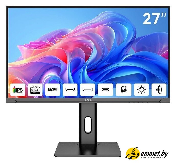 27", 2560x1440, 16:9, IPS, 180 Гц, яркость 350 нит, динамики, HDMI+DisplayPort, питание по USB-C до 65 Вт, регулировка высоты, портретный режим