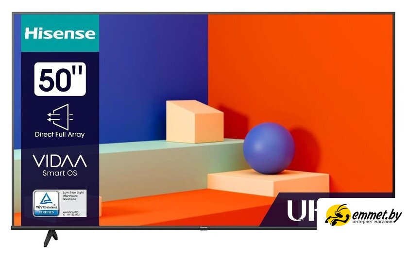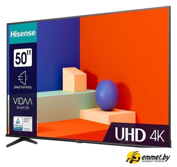 50" 3840x2160 (4K UHD), матрица IPS, частота матрицы 60 Гц, Smart TV (Vidaa), HDR10+, Dolby Vision, DTS:X, Wi-Fi, смарт пульт. СТБ! Официальная гарантия. Возможна доставка "сегодня на сегодня". По Минску есть услуга "Монтаж на стену" - платно. Доставка по Минску и Беларуси. Возможен самовывоз! Профессиональная консультация и помощь в выборе! Наши менеджеры ответят на интересующие вопросы. Пунктуальные и тактичные курьеры.