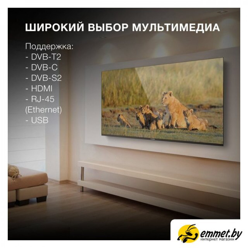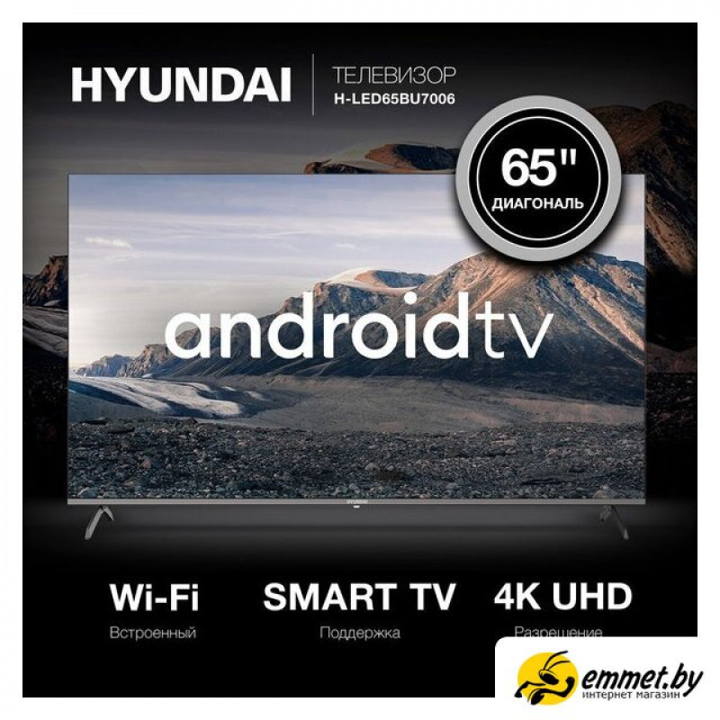 65" 3840x2160 (4K UHD), частота матрицы 60 Гц, Smart TV (Android TV), Wi-Fi, смарт пульт