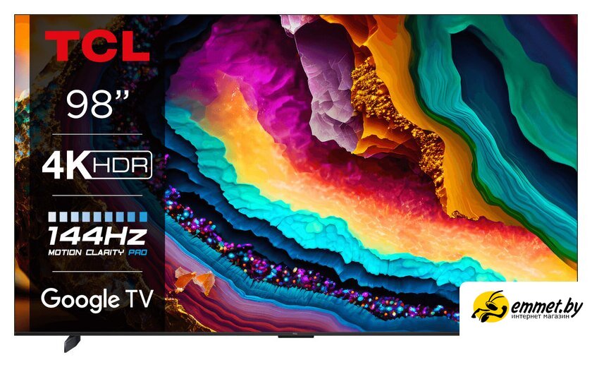 98" 3840x2160 (4K UHD), матрица VA, частота матрицы 144 Гц, Smart TV (Google TV), HDR10, HDR10+, Dolby Vision, Dolby Vision IQ, HLG, DTS:HD, DTS:X, Dolby Atmos, AirPlay, Wi-Fi, смарт пульт. СТБ! Официальная гарантия. Возможна доставка "сегодня на сегодня". По Минску есть услуга "Монтаж на стену" - платно. Доставка по Минску и Беларуси. Возможен самовывоз! Профессиональная консультация и помощь в выборе! Наши менеджеры ответят на интересующие вопросы. Пунктуальные и тактичные курьеры.